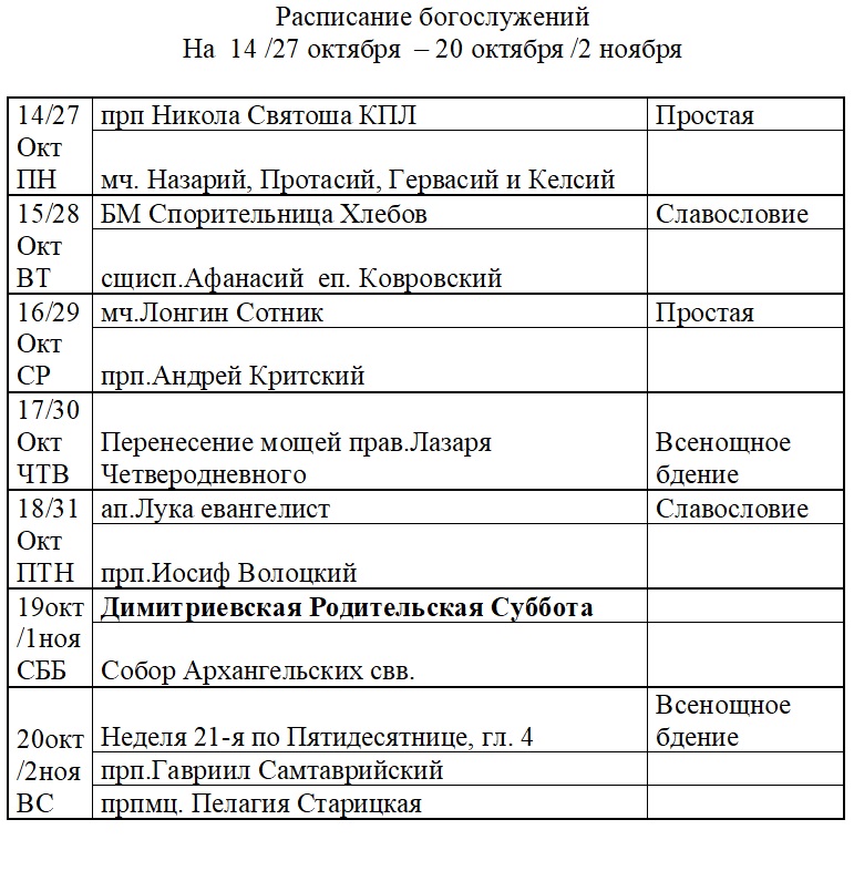 Расписание богослужений